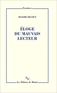 Frank Wagner : Cher Maxime Decout, même si vous n’avez jamais occulté les liens unissant pôles artistique et esthétique – il s’en faut de beaucoup -, vos trois précédents essais parus dans la collection « Paradoxe » des Éditions de Minuit, respectivement consacrés à la mauvaise foi, à l’imitation et à l’imposture, s’inscrivaient plutôt toutefois dans le cadre de réflexions sur l’écriture. Or, comme son titre l’indique, le dernier en date, Éloge du mauvais lecteur, témoigne clairement d’une concentration de votre attention sur les phénomènes de réception. Pourriez-vous expliquer les motifs qui ont présidé à ce glissement, ou à ce déplacement d’accent ?